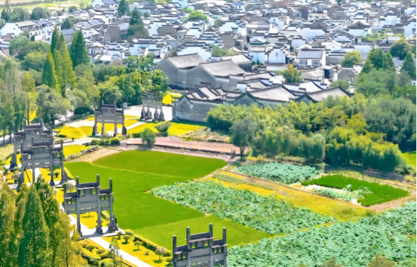 徽州古城——坐落在國家歷史文化名城歙縣縣城徽城鎮(zhèn)中心,千年徽州府治所在地,主體建筑有仁和樓、得月樓、茶樓、惠風石坊、徽園第一樓、過街樓、古戲樓等以及鑲嵌其間的古色古香商品住宅樓百余間,是展示和體現(xiàn)徽州文化的重要實物建筑。
