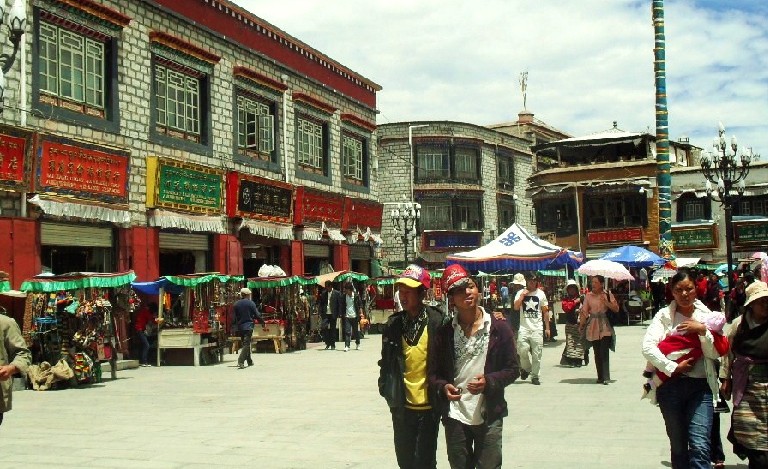 15世紀(jì)后,大昭寺成為佛教傳播的中心,其周圍相繼出現(xiàn)僧人宿舍、宗教學(xué)校、小寺廟建筑,眾多信佛者遷居大昭寺周圍生活,街上逐漸出現(xiàn)了大量民居、店鋪、旅館、手工作坊等設(shè)施。隨大昭寺宗教地位的加深,藏傳佛教認(rèn)為,以大昭寺為中心順時(shí)針繞行為“轉(zhuǎn)經(jīng)”,表示對(duì)供奉在大昭寺內(nèi)釋迦牟尼佛像的朝拜,八廓街成為拉薩三大轉(zhuǎn)經(jīng)道(大轉(zhuǎn)、中轉(zhuǎn)、小傳)之一。后又出現(xiàn)了來自蒙古、漢地、克什米爾、尼泊爾、不丹、印度等地區(qū)和國(guó)家的眾多商販、香客、游民,發(fā)展成為集宗教街、觀光街、民俗街、文化街、商業(yè)街和購(gòu)物街于一身的街區(qū)。