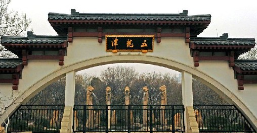 五龍?zhí)叮挥跐?jì)南舊城西門外,洛源橋北,南臨趵突泉,北接。潭周名泉眾多,形成五龍?zhí)度海瑸闈?jì)南四大泉群之一,內(nèi)有泉池二十七處。公園的建園風(fēng)格兼具有南北造園之精華,是以潭池溪港等景觀構(gòu)成,質(zhì)樸野逸為特點的園林水景園。此水域風(fēng)景秀麗,柳絲醮波,鳴禽啾啾,荇藻漂浮,錦魚嬉戲,素有“夾岸桃花,恍若仙境”之美譽(yù),風(fēng)景幽雅獨具特色。