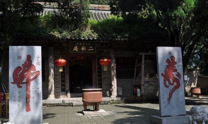二祖庵坐北向南,長34米,寬28.5米。它原是一座完整的四合院,前有山門,東西有配殿,北有正殿。山門內(nèi)供韋馱,亦稱韋馱殿;西配殿內(nèi)供緊那羅,亦稱緊那羅殿;東配殿內(nèi)供菩薩,亦稱菩薩殿。山門及東西配殿早已毀,僅存正殿。正殿名二祖殿,為硬山式建筑,面闊三間,前檐下有明柱兩根。殿內(nèi)供二祖慧可塑像。二祖庵在明嘉靖、萬歷、天啟、崇禎及清康熙、道光時(shí)曾修。1988年,又重修二祖庵大殿,1990年又在原山門處建門庭式簡易門一座,并重建了圍墻。在二祖庵殿東檐下有明代天順六年(1462年)正月鑄造的大鐵鐘一口,為二祖庵住持僧江耐化緣鑄造。大鐘周圍鑄有銘文,鐘重一千斤,有八唇,刻八卦。此鐘至今保存完好,鐘聲響亮。據(jù)舊志載,版權(quán)所有山東聊城聊之旅國際旅行社有限公司,轉(zhuǎn)載必究!四井水味各異,故當(dāng)?shù)厝罕姺Q之為“苦、辣、酸、甜”四眼井。四眼井實(shí)為人挖的井,卓錫得井僅為傳說。金末元初楊奐“卓錫泉”詩云:“至今卓錫地,瑩澈有遺泉。”明宣德二年(1427年),周鑒《游少林寺詩》有“山遺卓錫泉”。又明萬歷九年(1581年)王士性《嵩游記》載:“泉相去丈許,味各異。”由此,古井至遲鑿于金末,最少有700年的歷史。庵內(nèi)還保存明清古碑九通和古柏多株。二祖庵前有建于唐萬歲登封元年(696年)的無名塔、元代泰定元年(1324年)的緣公庵主之塔以及明崇禎二年(1629年)的隱光璞公之塔等三座古塔。在二祖庵院內(nèi)存有明嘉靖、萬歷、天啟、崇禎及清康熙、道光石碑九通,都為記載重修二祖庵的碑刻。 庵南約500米處有一高突的山崖,《少林寺志》云為二祖慧可養(yǎng)傷“經(jīng)行處”,又稱“養(yǎng)臂臺”、“煉魔臺”。晴天在臺上舉目可望伊河、洛河和黃河。