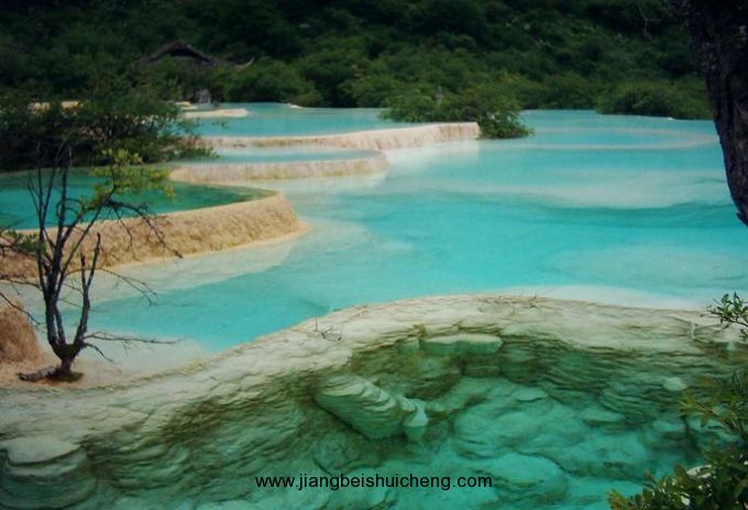進入黃龍景區(qū),首先看到的是一組精巧別致、水質(zhì)明麗的池群--迎賓池。池子大小不一,形狀奇特,色彩艷麗,錯落有致,四周山岳環(huán)峙,林木蔥蘢,山間野花競放,彩蝶飛舞。山間石徑曲折盤旋,點綴著觀景亭閣,倍添情趣。