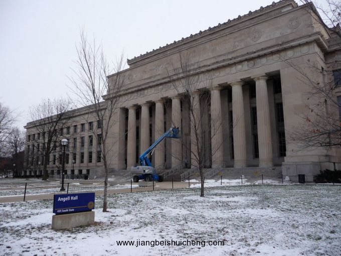 從校園往外看,密歇根大學(xué)的所在地安娜堡(Ann Arbor),近年來在全美國最適合居住的城市名單內(nèi)榜上有名,這里是不折不扣的文化氣息濃厚的大學(xué)城,走出校園幾分鐘,就有劇場、餐館、琳瑯滿目的商店和超級市場。如果在安娜堡呆煩了的話,汽車工業(yè)重鎮(zhèn)底特律就在一小時(shí)以外。實(shí)際上,安娜堡的教學(xué)科研機(jī)構(gòu)與底特律林立的大企業(yè)有著千絲萬縷的聯(lián)系。