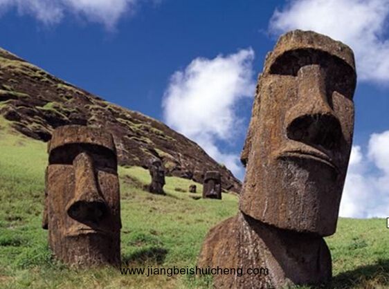 智利的復(fù)活節(jié)島位于太平洋東南部,以神秘巨像名聞遐邇。島上有600多尊面對大海的古代巨大半身石雕像。19 96年2月,該島被聯(lián)合國教科文組織宣布為世界文化遺產(chǎn)。