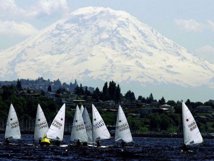 西雅圖是一個(gè)不可思議的城市。它海拔最低,卻有古老的冰川,活躍的火山和終年積雪的山峰。西雅圖又是一個(gè)得天獨(dú)厚的城市,它擁有青山、湖泊,擁有港灣河道,擁有溫潤(rùn)的氣候,如春的四季。無(wú)論是在美國(guó)本土,還是在世界其他地方,幾乎找不到第二個(gè)城市能像西雅圖那樣,山巒、平地都被密密的、幾近原始的森林所覆蓋。市區(qū)內(nèi)外皆襯飾著幽靜的港灣、河流、綠樹(shù),掩映著色彩豐富的街市。而在環(huán)繞著城市的青山之中,又錯(cuò)落地隱藏著幾十個(gè)大小不等的湖泊。樹(shù)木蔥郁,草地青蔥,甚至飄來(lái)飄去的雨,輕輕掠過(guò)的風(fēng),都帶著青綠的顏色。