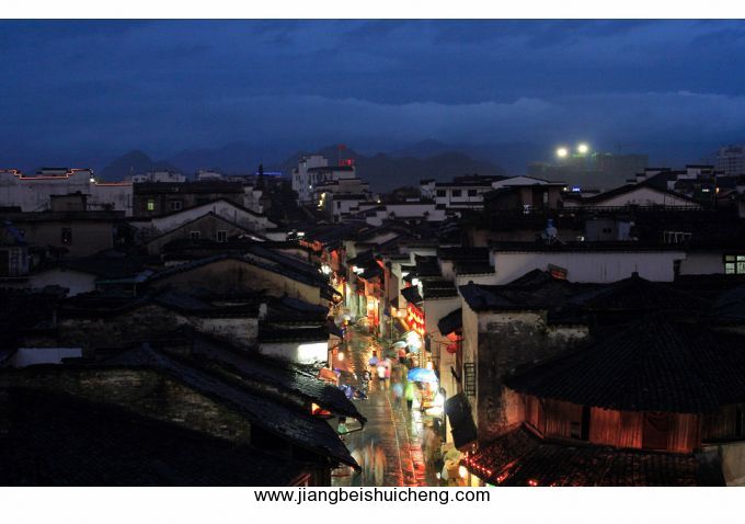 屯溪老街坐落在黃山市中心地段,鑲嵌在青山綠水之間。北依四季蔥蘢的華山,南伴終年如藍(lán)的新安率水。老街距今已有數(shù)百年歷史,全長832米,寬5~8米,是目前中國保存最完整的,具有宋、明、清時(shí)代建筑風(fēng)格的步行商業(yè)街。