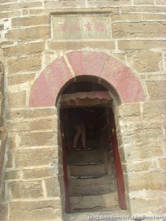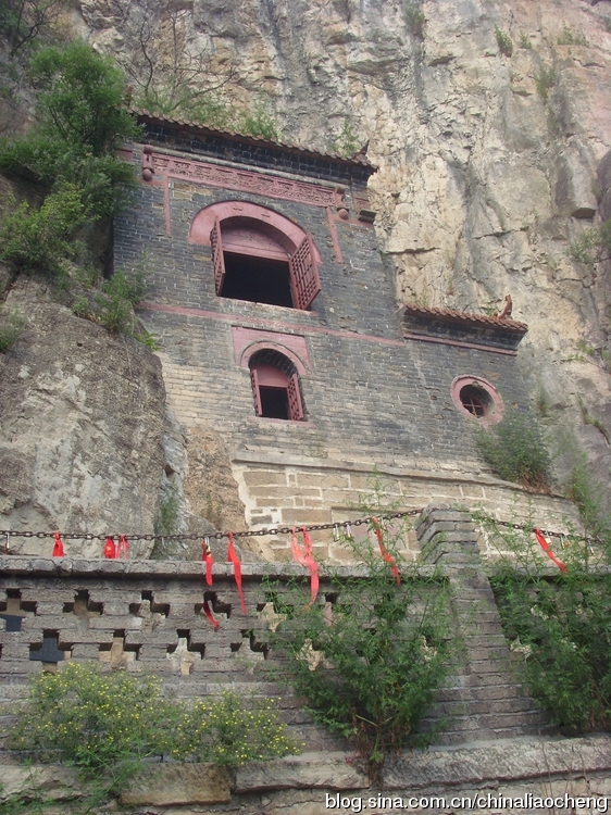 這正是建在懸崖峭壁上的織女洞洞口,洞口是二層樓閣式古建筑,很有現(xiàn)代特色