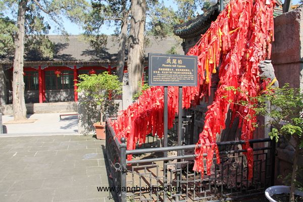 園內(nèi)種植著旋生柏、鳳尾柏、結(jié)義柏等多棵柏樹