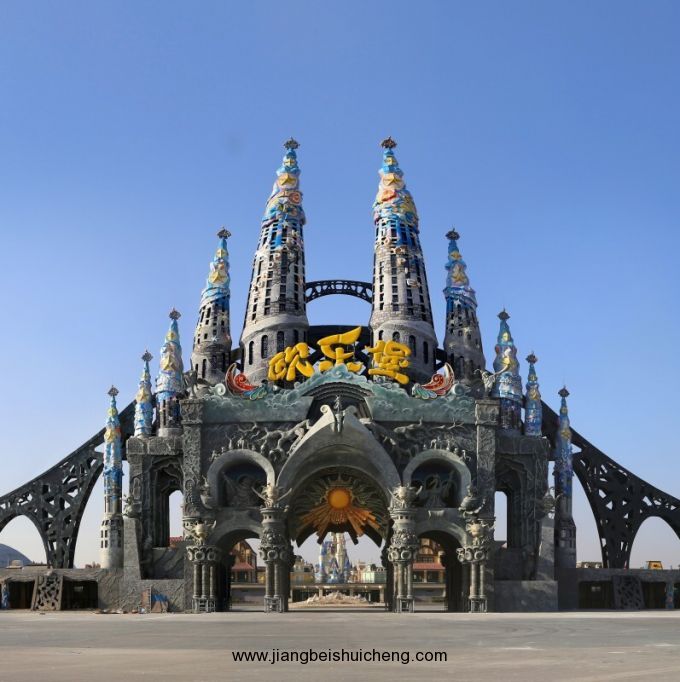 景區(qū)入口處——歡樂凱旋門,東西橫跨180米,高59米,是世界主題樂園中規(guī)模最大并充滿魔幻智慧色彩的地標(biāo)性建筑,充分展現(xiàn)出世界之最的恢宏磅礴氣勢。
