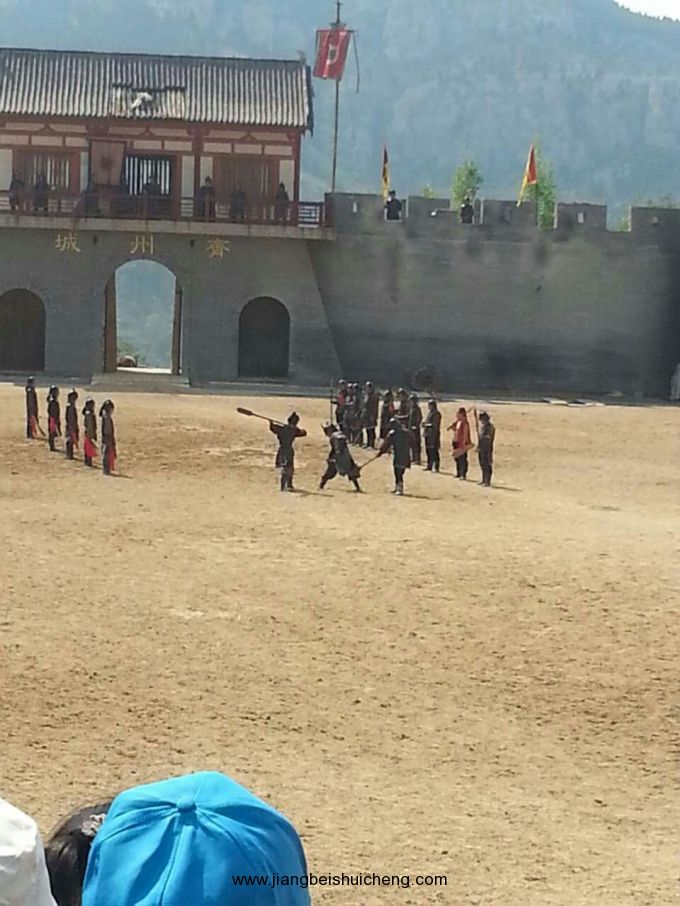九頂塔影視劇場精心打造了五大實(shí)景劇。有紅色經(jīng)典參與劇《地道戰(zhàn)》、好萊塢場景劇《山洪暴發(fā)》、大型馬戰(zhàn)實(shí)景劇《好漢秦瓊》、《武松醉打蔣門神》、《劉三姐招親》,是國內(nèi)實(shí)景劇節(jié)目演出最多的景區(qū)。紅色經(jīng)典參與劇《地道戰(zhàn)》演員陣容龐大,具有較強(qiáng)的思想性、參與性、喜劇性和娛樂性,再現(xiàn)了當(dāng)年地道戰(zhàn)的戰(zhàn)爭場景,濃縮了地道戰(zhàn)的精彩片段,是一部難得的“牢記歷史、勿忘國恥”的生動愛國主義教育題材。好萊塢場景劇《山洪暴發(fā)》,再現(xiàn)了暴風(fēng)驟雨、驚心動魄的場面,氣勢磅礴,令人震撼,弘揚(yáng)了中國人民不被自然災(zāi)害所嚇倒和團(tuán)結(jié)一致、克服困難、重建家園的大無畏精神。
