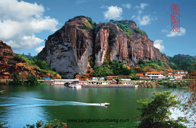 由漁亭沿漳水而上,距黟縣城8公里的石墨嶺南麓,山骨突出,巖石削立,古樹(shù)蔥郁,桃花夾岸。山腰鑿有洞,即桃源洞。穿沿而過(guò),支木以行,故又稱棧閣嶺,下臨鐘潭,南北壁立百余米,漳水奪澗西瀉,山形險(xiǎn)峻,風(fēng)光綺麗。過(guò)洞豁然開(kāi)朗,屋舍儼然,的確酷似陶淵明筆下的桃花源。