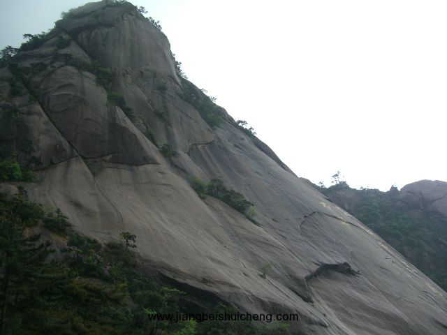 立馬峰大石壁位于安徽省黃山的溫泉景區(qū)。由慈光閣前行約五華里到立馬橋頭,在橋頭舉首眺望對(duì)面立馬峰,可見懸崖上一大峭壁,凌空而下,這峭壁就是立馬峰大石壁。