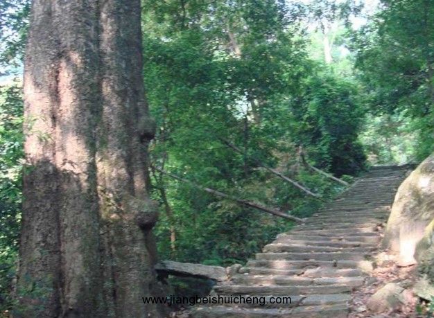 寶劍 、死后的化身(石佛) 、楊八妹帶來的漫天大霧 等等。傳說流傳很廣,但并非史實。所以形成這些傳說是因為古道歷經(jīng)世故,飽受滄桑,給人留下了許多神秘的地方,而這些傳說也成為人們到三千八百坎游覽的一種登山探奇的動力。三千八百坎沿途景色隨著登山高度的變化而不同,或石壁陡峭、或深谷懸崖;山澗小溪忽在道旁潺潺低唱,忽而在斷崖前跌落為瀑布;那遠(yuǎn)近山中不時傳出的鳥叫聲和那宛囀不絕的蟬鳴更給十里古道增添了幽靜、深遠(yuǎn)的感覺。登上三千八百坎,舉目四顧,但見風(fēng)煙俱靜,天山共色,頓覺心胸開闊、神清氣爽。遠(yuǎn)處可見建溪、富屯溪二水繚繞南平城,閩江蜿蜒如帶下福州。坎頂兩座山頭之間有座古堡緊扼交通要道,此為古代兵家必爭之地。古堡外有七株千年水杉,即使遠(yuǎn)在15公里外的南平城內(nèi),人們也可清楚地看到它們挺拔入云的雄姿。三千八百坎吸引了許多游客,他們總是要用自已的腳步去證實它是否名符其實的3800坎,結(jié)果也總是大惑不解:明擺著的五千多,為何偏叫三千八?在距坎頂357級的路旁立有一塊石碑,三千八百坎為何成為五千余級的緣由就在該碑的題字中。十年動亂時期,該碑被砸成十?dāng)?shù)塊* ,散落于草叢中,有的被搬去鋪路、砌灶。最近,南平市文物部門發(fā)動當(dāng)?shù)厝罕妼ふ覛埰占饋斫?jīng)過拼合修整,基本恢復(fù)原狀立于舊址。