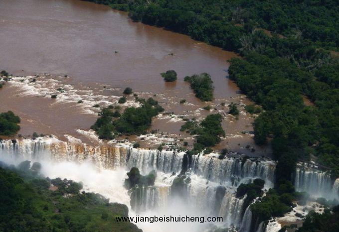 位于最西邊的是“魔鬼瀑布”,魔鬼瀑布最為氣勢磅礴,以排山倒海之勢直落深淵。轟鳴聲震耳欲聾。強烈的威懾力使人不敢靠近;“主瀑布”在中間,主瀑布高122米、寬約1800米,落差約93米。流量最大,中間有一條縫隙;東側(cè)是“馬蹄瀑布”,它因被巖石遮擋為馬蹄狀而得名;像巨簾一般的“彩虹瀑布”則位于“馬蹄瀑布”的東邊,空氣中的水點折射陽光,產(chǎn)生美麗的彩虹。彩虹瀑布即因時常可以從中看到七色彩虹而得名。水霧形成的彩虹遠隔20公里以外就能看到,彩虹經(jīng)常在飛濺的水花中閃爍,并且能上升到305米的高度。在月色明亮的晚上,水氣更會形成奇異的月虹;“東瀑布”是最東的一段,該瀑布在旱季時往往是陡崖峭壁,雨季才成為掛滿千萬條素練般的瀑布。