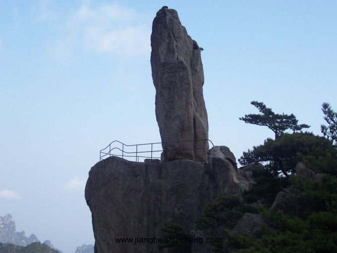相傳,宋代有個叫單福的石匠,一生給人家造了不少橋,心想也在自己家鄉(xiāng)門口的江上建造一座,但嘆息沒有幫手。他膝下只有一女叫小姣,長得聰明美麗。她知道父親的心思.便要求參加幫助干。但那深山采石,百里運石的苦和累,小女子怎么受得了,所以單福就是不答應(yīng)。小姣跪在地上苦苦哀求,單福沒奈何,才含淚點頭。他還把三個徒弟找來幫忙,不久就干起來了。由于開山運石的苦和累實在難受,大徒弟和二徒弟先后悄悄地溜了。單福和女兒、三徒弟為修橋鐵了心,繼續(xù)風(fēng)里雨里苦干著。版權(quán)所有,山東聊城聊之旅國際旅行有限公司轉(zhuǎn)載必究!但好幾年過去了,運到江邊的石頭只有一小堆.這樣累死苦死,橋也建不起來。小姣一咬牙,請人寫了“捐身修橋”四個大字,插了個草標(biāo),坐到江邊石堆旁。一連三天,來看的人無數(shù),但望望滔滔的江水,就都走了。這天,忽然來了個瘸子。身背一把扇子,摘了草標(biāo).問小姣愿不愿意跟他走,小姣回答說:“什么時候把大山里開采的石頭全運到江邊,就什么時候踉你走。”這瘸子原來是八仙中的鐵拐李。他擠出人群,騰云駕霧,很快來到百里外的大山,從背上拿下扇子,對著單福和三徒弟開出的石頭就扇。石頭竟都飛了起來,又紛紛都落在江邊。單福和三徒弟也被從山上扇到了造橋工地。鐵拐李還怕不夠,又對身下立著的一塊巨石扇了三扇子,他就站在那巨石上飛到了江邊。只見底下盡是人,未敢讓巨石落下。又聽單福大聲說:“石頭夠了”。他便駕起云頭,飄游起來,游到黃山,見黃山風(fēng)景秀麗,便將石頭落下。從此,這飛來石就給黃山增添了絕妙的一景。另外還有兩處飛來石,一在翠微峰側(cè),一在古穎林庵前小峰上。