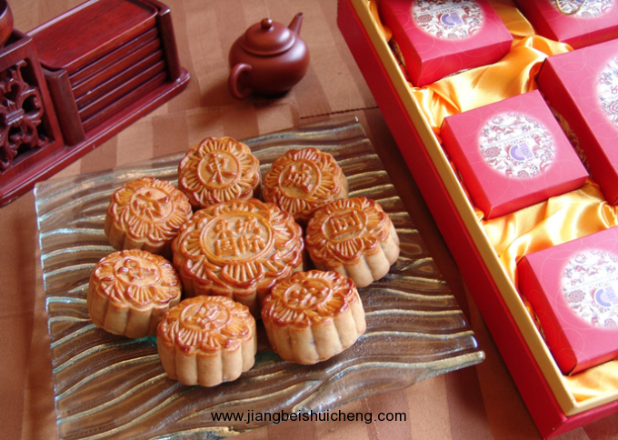 古時(shí)漢族的中秋宴俗,以宮廷最為精雅。如明代宮廷時(shí)興吃螃蟹。螃蟹用蒲包蒸熟后,眾人圍坐品嘗,佐以酒醋。食畢飲蘇葉湯,并用之洗手。宴桌區(qū)周,擺滿鮮花、大石榴以及其他時(shí)鮮,演出中秋的神話戲曲。清宮多在某一院內(nèi)向東放一架屏風(fēng),屏風(fēng)兩側(cè)擱置雞冠花、毛豆技、芋頭、花生、蘿卜、鮮藕。屏風(fēng)前設(shè)一張八仙桌,上置一個(gè)特大的月餅,四周綴滿糕點(diǎn)和瓜果。祭月完畢,按皇家人口將月餅切作若干塊,每人象征性地嘗一口,名曰“吃團(tuán)圓餅”。清宮月餅之大,令人難以想象。像末代皇帝溥儀賞給總管內(nèi)務(wù)大臣紹英的一個(gè)月餅,便是“徑約二尺許,重約二十斤”。