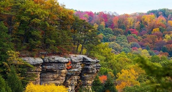 從9月中旬,漆樹、黃楊、山毛櫸等率先以深紅、鵝黃拉開了秋的序幕;隨后,糖楓、紅楓、西克莫楓等上百種楓樹也慢慢由黃色、橙色轉(zhuǎn)變成紅色,與交織其中的綠松、杉樹共同譜寫出秋的主旋律;而伴隨著越來越長的夜晚、越來越?jīng)鏊奶鞖猓狈郊t楓等加?xùn)|常見的樹木,以深沉的紅褐色預(yù)告著秋天即將謝幕。當(dāng)這些如馬賽克般紅的、黃的、橘紅的、褐色、金黃的色彩掩映在碧水藍(lán)天之間,你會驚嘆于造物主的巧奪天工。