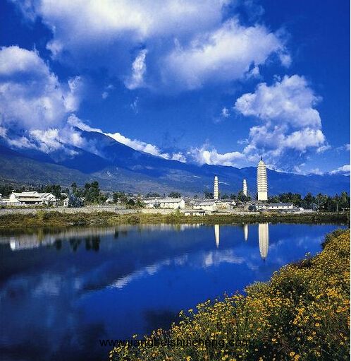 崇圣寺三塔和三塔倒影公園互為添輝,相與增色,從而成為最能代表大理形象的重要人文景觀。倒影公園最有特點(diǎn)的是池水碧綠如玉、清澈見底、浪不驚、平如鏡,三塔倒影清晰,令人嘆為觀止。角度不同,倒影形態(tài)亦隨之各異,是攝三塔最佳場(chǎng)所。在冬季,整座蒼山銀妝素裹,三塔倒影更加美麗迷人。正如清代楊炳锃《三塔倒影》所贊“佛都勝概肇中堂,三塔嶙嶙自放光。蒼麓湖蟠倒影,此中幻相說空王。
