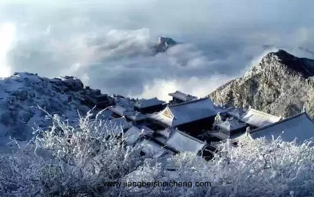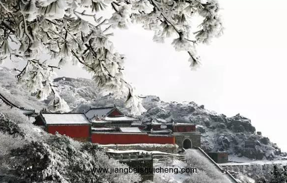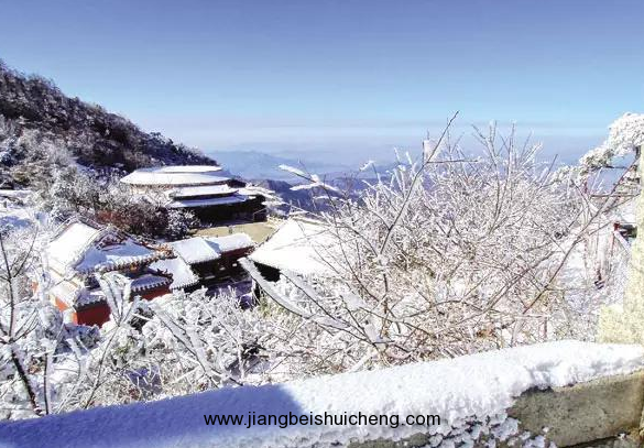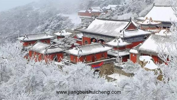 一場雪落,萬籟俱靜。遠(yuǎn)方山黛,近處墻紅,廟檐堆雪,樹掛霧凇。這一派景象甚是恢弘!