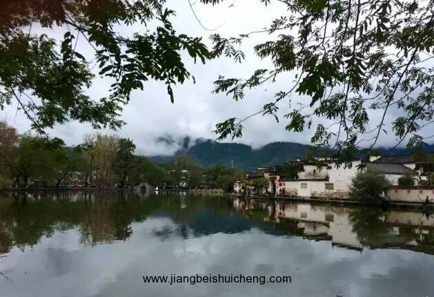 宏村為:山為牛頭,樹(shù)為角,屋為牛身,橋?yàn)槟_”的牛形村落。