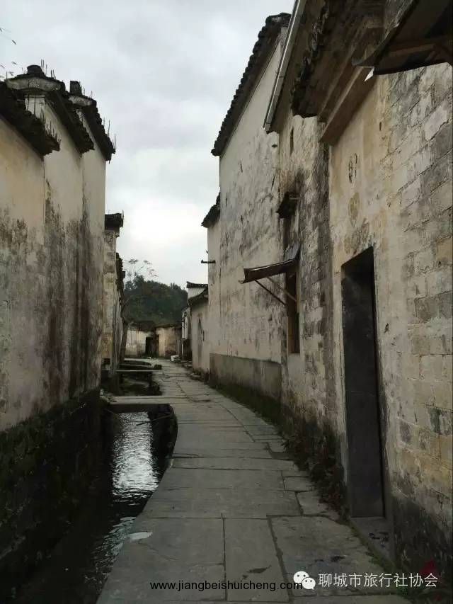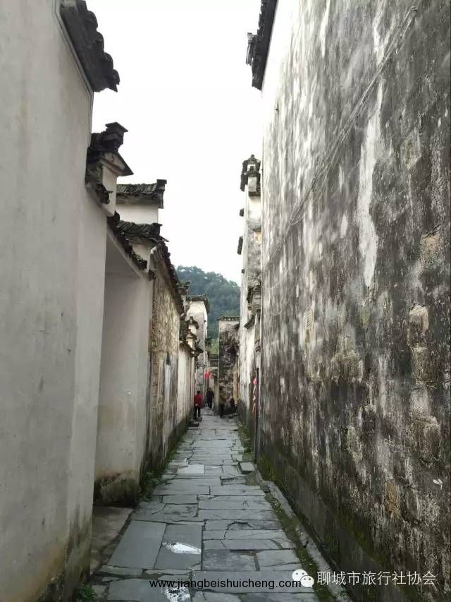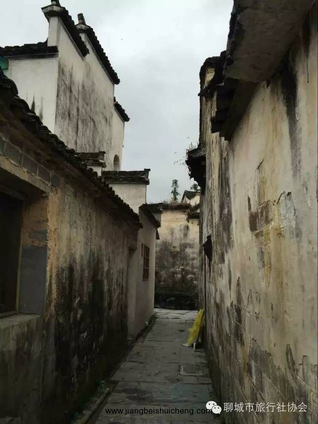 西遞村建房多用黑色大理石,兩條清泉穿村而過(guò),99條高墻深巷,各具特色的古民居,使游客如置身迷宮。