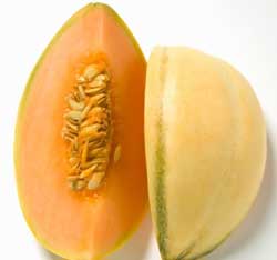 甜瓜又稱甘瓜或香瓜。它是夏令消暑瓜果,其營養(yǎng)價(jià)值可與西瓜媲美。據(jù)測定,甜瓜除了水分和蛋白質(zhì)的含量低于西瓜外,其他營養(yǎng)成分均不少于西瓜,而芳香物質(zhì)、礦物質(zhì)、糖分和維生素C的含量則明顯高于西瓜。祖國醫(yī)學(xué)確認(rèn)甜瓜具有“消暑熱,解煩渴,利小便”的顯著功效。因甜瓜性寒,有吐血、咳血、十二指腸及胃潰瘍、慢性腸炎、脾胃虛寒、寒積腹脹或腹痛腹瀉、小便頻多、心臟病等人慎用或忌用。正常健康的人也不宜大量常吃,因甜瓜水分很多,吃太多在胃里會沖淡胃液,傷胃引起消化不良或腹痛腹瀉。