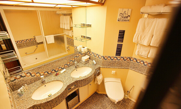 2、所有客艙均包括帶淋浴和衛(wèi)生間的私人盥洗室,并裝有空調(diào)、衛(wèi)星電視、電話、小冰箱、保險(xiǎn)柜、吹風(fēng)機(jī)和音樂(lè)播放設(shè)施。您客艙的服務(wù)員的姓名顯示在您客艙卡片上。客艙內(nèi)定時(shí)提供及更換被褥和毛巾等織物。盥洗室提供香皂和沐浴露。出于環(huán)保考慮和為限制塑料制品的使用,如有需要,請(qǐng)向客艙服務(wù)員索取免費(fèi)贈(zèng)送的浴帽和瓶裝滋潤(rùn)霜。