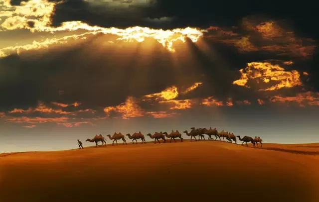絲綢之路上的駝隊和主人也是經(jīng)驗豐富的模特,他們能在沙漠中找到最適合拍攝的水洼、沙坡,和最佳的日落時間,調(diào)度和隊形也不需要攝影師操太多的心。