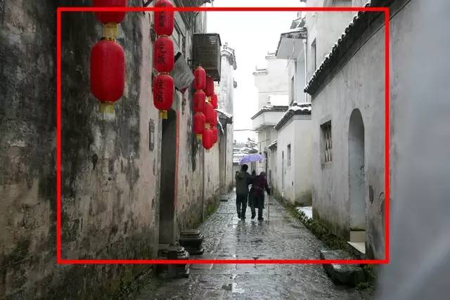 點評:濕漉漉的青石板路,巷子邊上的引導線把觀眾的視線引到畫面中心的兩人身上,大紅燈籠更是點綴了整幅作品的基調。只是右側白墻的虛影擾亂視線,可剪裁掉,使畫面中心更突出。