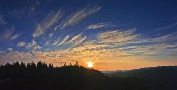 遠景是日落的晚霞五彩斑斕十分漂亮