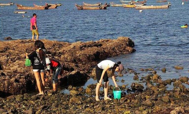 早晨趕海拾貝捉牡蠣、海螺、小魚、小蝦、螃蟹、蛤蜊等!