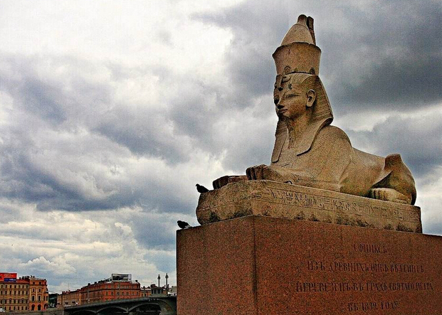 獅身人面像 :(外觀)這一對(duì)帶有獅身的阿門(mén)霍特布三世的法老面像,是公元前1455年--1419年雕刻的,1832年從尼羅河運(yùn)到圣彼得堡。