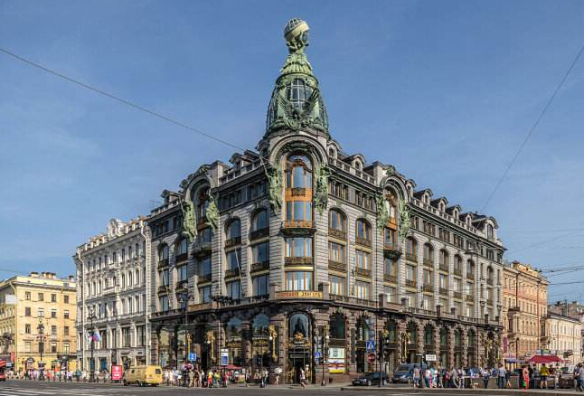 外觀海軍部大樓:整個(gè)大樓融合古典主義建筑藝術(shù)和俄國(guó)建筑藝術(shù),并用眾多塑像浮雕壁畫(huà)裝飾,整座大廈顯得熠熠生輝。