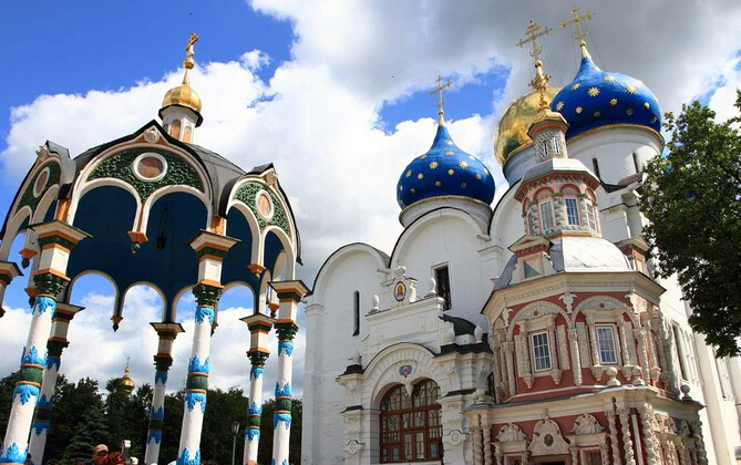 今天部分拍攝點包括謝鎮(zhèn)民風特色,修道院建筑精華及藝術杰作。【圣三一修道院】*(內觀,約1.5小時)是東正教最古老的教堂建筑群之一,里面有許多著名的俄羅斯建筑古跡。其中最古老的是三位一體教堂,里面安放著謝爾蓋院長的棺木。周圍坐落著圣靈降臨教堂、圣母升天教堂、圣謝爾蓋教堂、左希姆和薩瓦提等教堂。它的建筑精華包括:用白色半寶石砌成的圓頂、黃金雕成的壁上橫木、由魯伯里歐夫所繪圣像裝飾而成的圣像門等,都是令人贊嘆的藝術杰作。以畫《三位一體》而出名的俄羅斯畫家安德烈·魯布廖夫的壁畫作品一度收藏在教堂中,現(xiàn)在則收藏于莫斯科的特列基亞科夫畫廊。午餐特別安排品嘗特色俄餐,稍后入住賓館。下午客人可以自由活動,體驗小鎮(zhèn)的民風特色,感受無邊的美景。