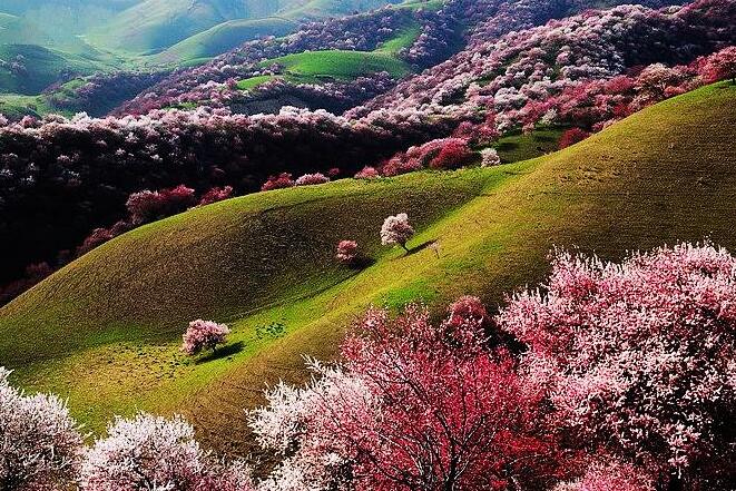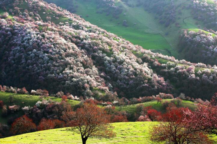 早餐后出發(fā)前往【中華福壽山景區(qū)】位于霍城縣西北的大西溝鄉(xiāng)境內,距伊寧市90公里,距縣城50公里。漫山遍野的杏花將景區(qū)裝點的風光如畫,美若仙境。景區(qū)內生長各類野果約60余種,以野酸梅、野蘋果、野核桃、杏、山楂為多,共有野生果樹幾十萬株。野酸梅是亞洲獨有的、唯一分布在伊犁河谷的罕見物種,其學名為櫻桃李。大西溝鄉(xiāng)是世界罕見、亞洲唯一野櫻桃李的原產地,被國家命名為“中國野生櫻桃李之鄉(xiāng)”。