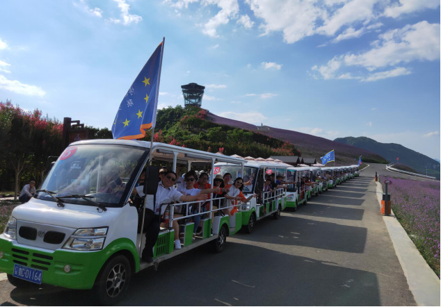 博盟考察團在黔北花海景區(qū)乘坐電車觀光游覽(完)