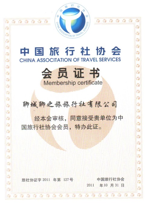中國旅行社協(xié)會(huì)會(huì)員證書 |