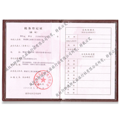 路路順租車服務(wù)中心稅務(wù)登記證 |