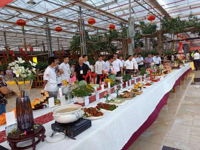 莘州集團(tuán)旗下中農(nóng)酒店管理公司總經(jīng)理李傳輝,誠(chéng)邀各位參會(huì)嘉賓參觀生態(tài)園廚藝交流會(huì),介紹生態(tài)園特色,欣賞精美菜品。各位參展嘉賓為廚藝交流會(huì)表示贊許。
