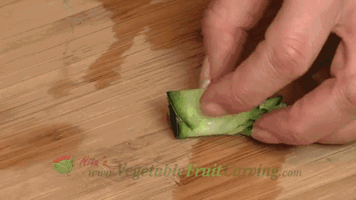 3.之后將黃瓜片稍微向上推移,如此往復。
