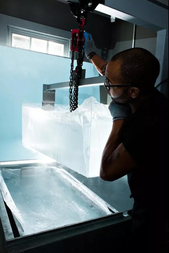 冰板制作好后,調(diào)酒師將對(duì)其進(jìn)行人工切割,不斷地切成小塊,然后再將這些小塊一一鑿成需要的形狀。如果說(shuō)一個(gè)高人氣(high-volume)酒吧只使用手工制作的冰塊,那么粗略計(jì)算一下,這個(gè)酒吧每晚都需要一個(gè)調(diào)酒師專(zhuān)門(mén)鑿冰,并且馬不停蹄地鑿一個(gè)半小時(shí)。London Cocktail Club bars在去年一共賣(mài)出大約14萬(wàn)杯老式雞尾酒,如果使用手鑿冰塊,可想而知這背后所需的人力和時(shí)間多么龐大。