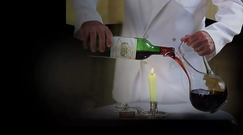 在傳統(tǒng)的侍酒服務(wù)中,開瓶時(shí)需要在酒瓶下方點(diǎn)燃一根蠟燭,選擇合適透亮的角度,在燭光前緩緩將酒液倒入醒酒器中,直到看見沉淀流動(dòng)到瓶頸處停止。