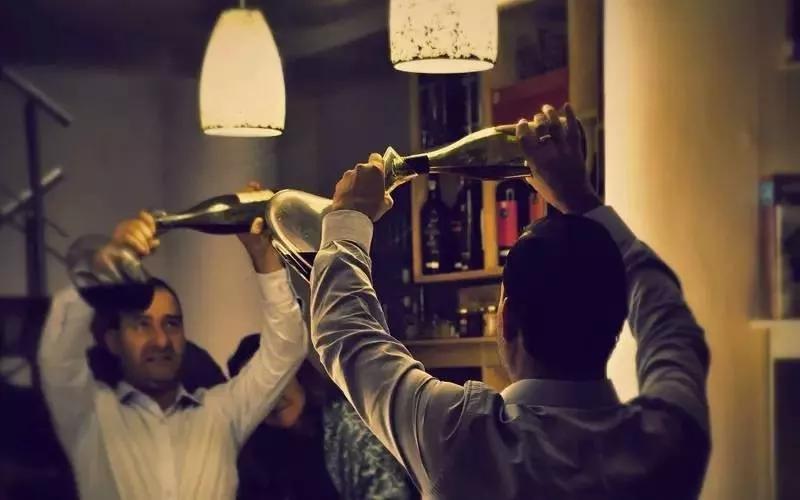 對(duì)于新酒而言,倒酒的速度不應(yīng)過慢,最好將酒液倒在瓶頸的位置,同時(shí)醒酒器和瓶口之間的角度不宜過大,這樣才能使酒液在醒酒器中形成旋流,增大了酒和氧氣的接觸面積,加速酒的“蘇醒”。