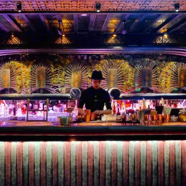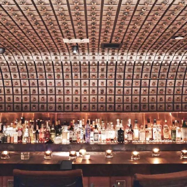 J.Boroski 其實跟 The Iron Fairies 一樣,出自 Ashley Sutton 和 Joseph Boroski 之手。空間格調(diào)更時尚和華麗,但最讓人震撼的吧臺后面整面墻的甲蟲裝飾一眼就能看出是他的設(shè)計。
