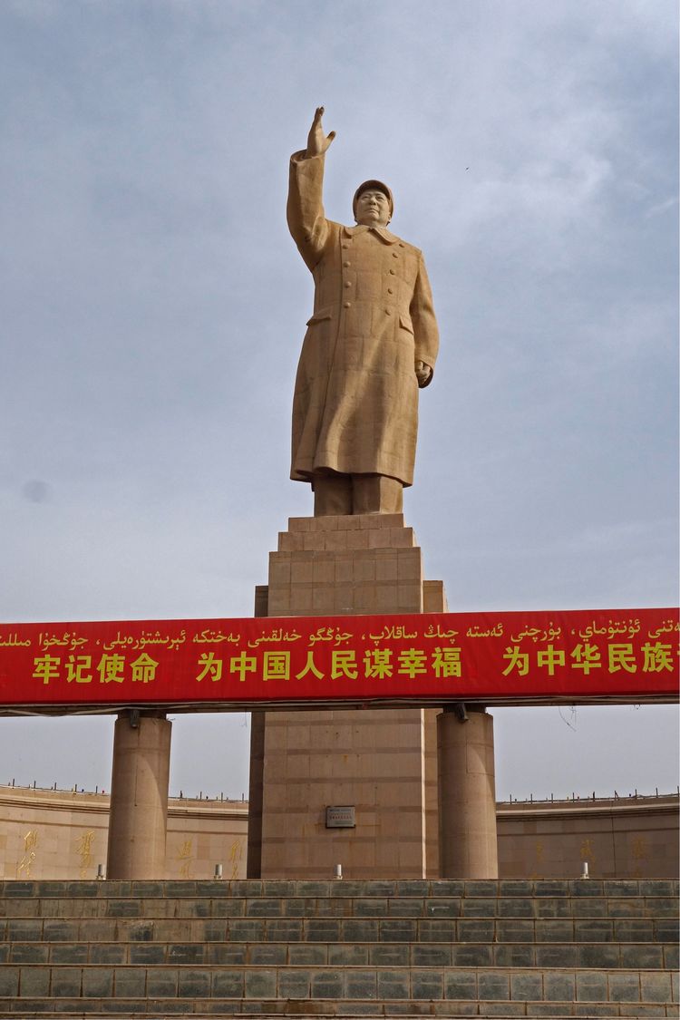偉大領(lǐng)袖毛主席的雕像高高聳立在城市廣場(chǎng)。