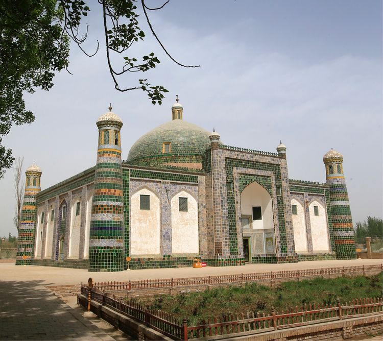 香妃墓,坐落在喀什市東郊的浩罕村,系自治區(qū)的重點(diǎn)文物保護(hù)單位。這是一座典型的伊斯蘭古建筑群,也是伊斯蘭教圣裔的陵墓,占地2公頃。 據(jù)說(shuō)墓內(nèi)葬有同一家族的五代72人。第一代是伊斯蘭著名傳教士玉素甫霍加。他死后葬于此。 傳說(shuō),埋葬在這里的后裔中,有一個(gè)叫伊帕爾汗的女子,是乾隆皇帝的愛(ài)妃,由于她身上有一股常有的沙棗花香,人們便稱她為“香妃”。香妃死后由其嫂將尸體護(hù)送回喀什,并葬于此墓內(nèi),因而人們又將這座陵墓稱作“香妃墓”。不過(guò)據(jù)考證,香妃并沒(méi)有葬在這里,她確切的葬地在河北遵化清東陵的裕妃園寢。