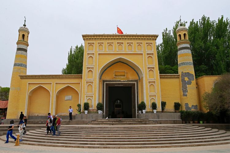 艾提尕爾清真寺坐落于喀什市艾提尕爾廣場(chǎng)西側(cè),始建于1442年,它不僅是新疆規(guī)模最大的清真寺,也是全國(guó)最大的清真寺之一。在國(guó)內(nèi)外宗教界均具有一定的影響。可惜,清真寺內(nèi)部禁止拍攝。