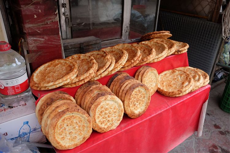烤馕是喀什維吾爾族最主要的面食,也是維吾爾族飲食文化中別具特色的一種食品,喀什人民常說(shuō)“可以一日無(wú)菜,但決不可以一日無(wú)馕。”