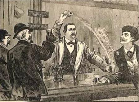 杰瑞·托馬斯的調(diào)酒生涯開始于耶魯大學(xué)的所在地,紐黑文。這或許是他被人戲稱為“教授”的原因之一。反正隨著淘金熱的到來,杰瑞·托馬斯遠(yuǎn)赴舊金山,干的都不是什么體面事。他既在酒吧調(diào)酒,又下礦井采礦,甚至還身兼吟游詩人秀場(chǎng)經(jīng)理…