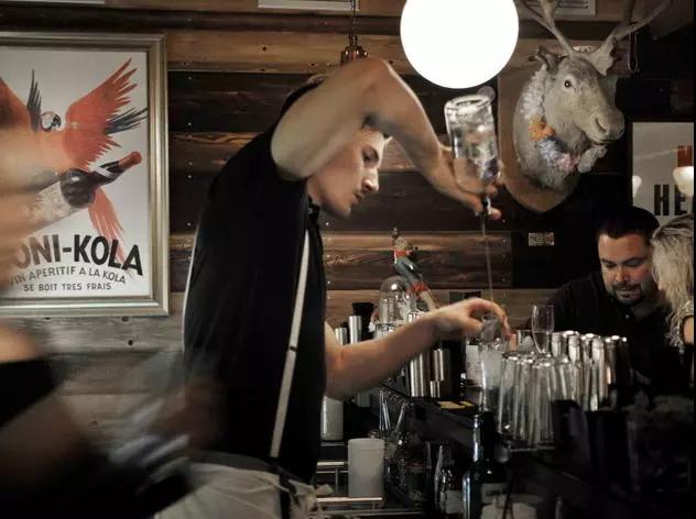入口處有一個(gè)陡峭的樓梯和極低的天花板,小心不要碰到頭部喲。木質(zhì)的裝修風(fēng)格,有著厚重古樸的時(shí)代感。調(diào)酒師的技藝高超,有時(shí)他們一人同時(shí)管理著幾個(gè)單子,卻絲毫沒有出差錯(cuò)。酒的名字特別新奇,看到就讓人好奇它的味道,忍不住想要嘗試一下。