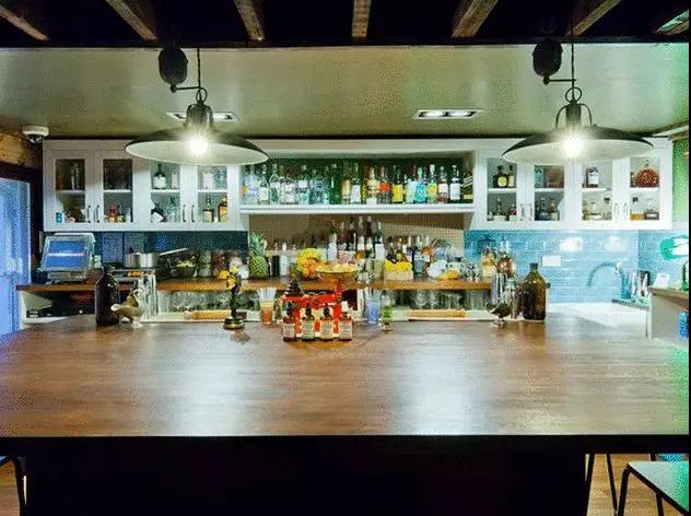 燈光昏暗的地下室酒吧,配有深色調(diào)的家具,配上一杯好喝的雞尾酒,別有一番情調(diào)。